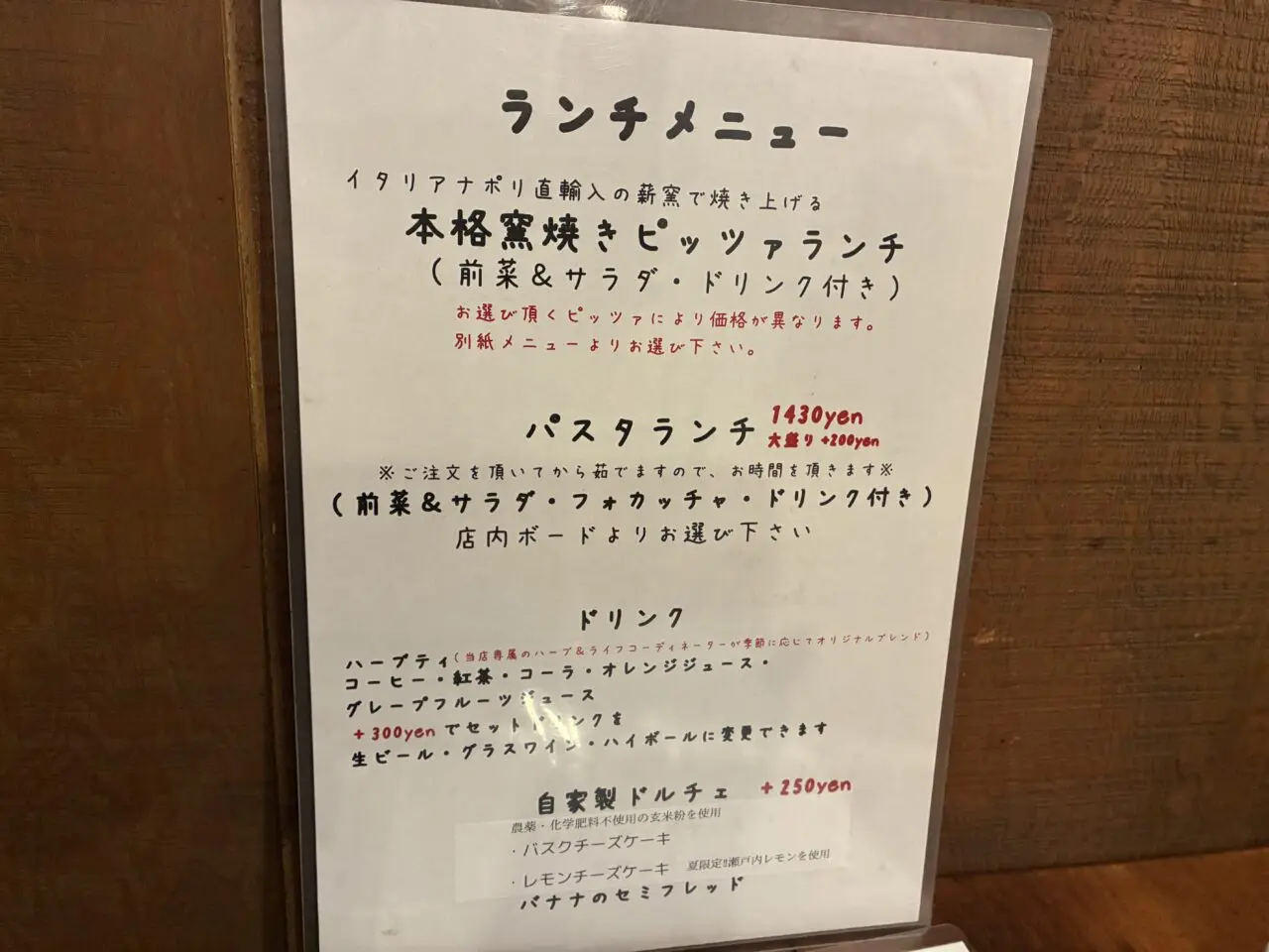 店内の薪窯で焼き上げる本格ピッツァはオススメで、ランチセットはリーズナブルです。