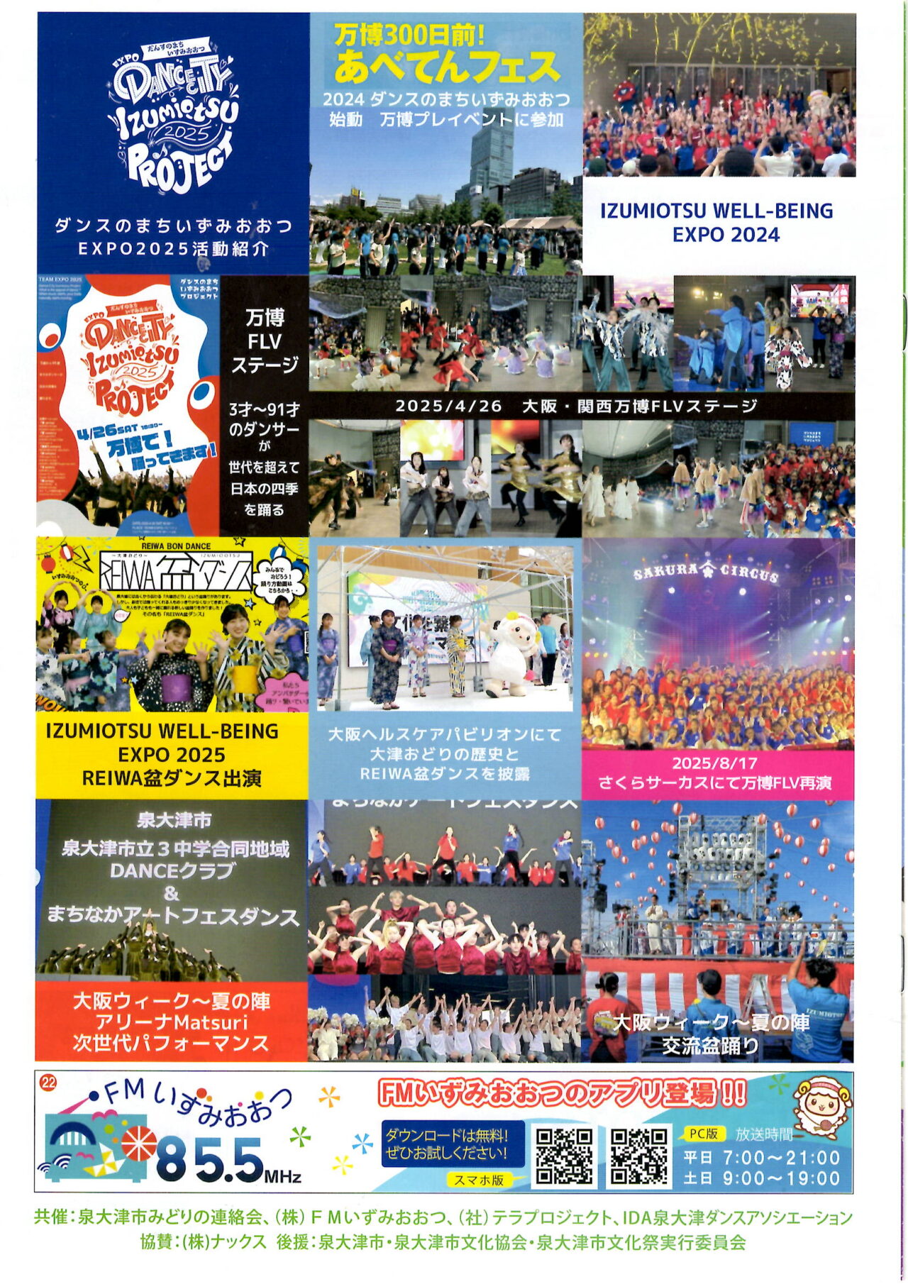ステージではオープニングは泉大津市吹奏楽団×泉大津市内3中学校吹奏楽部の演奏に続いて開会式ではみどりのサンタセレモニー、市内で活動されてるダンスチームなどのパフォーマンス、最後はREIWA盆ダンスをみんなで踊ろうと閉会式の15時まで盛り沢山の内容です。