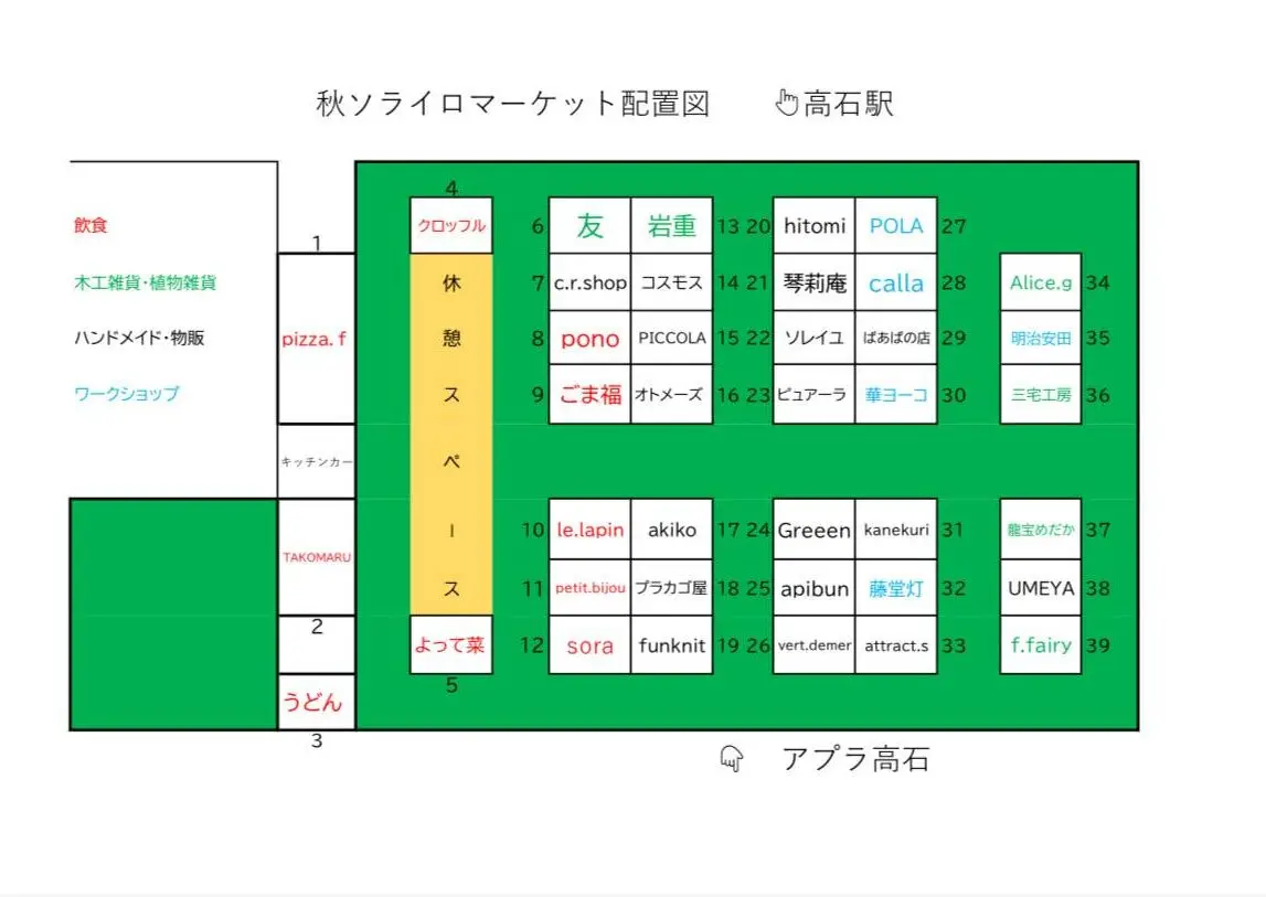 当日は高石駅前芝生広場(アプラたかいし前)を全面使用し、約40の出店が予定されています。