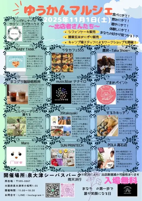 【泉大津市】11/1 シーパスパークでゆうかんマルシェが開催されます!