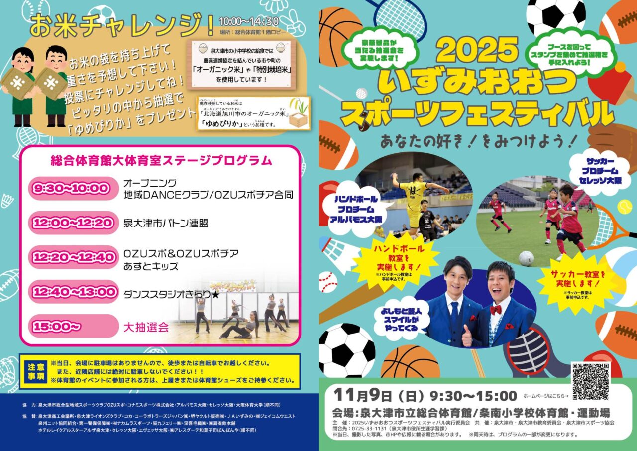 【泉大津市】11/9総合体育館で2025いずみおおつスポーツフェスティバルが開催されます!