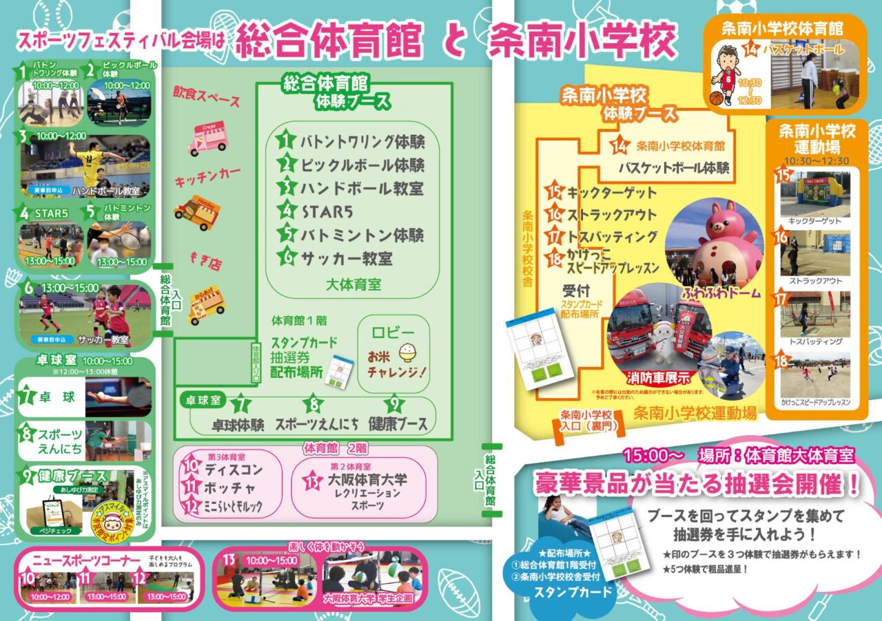 スポーツ体験コーナー、健康・レクリエーションコーナー、大阪体育大学によるレクリエーションスポーツコーナーなど多彩なプログラムを用意しています。さらに、今年度は、プロチームのセレッソ大阪やアルバモス大阪による体験コーナーも登場!みんなが楽しく過ごせるスポーツフェスティバルです。いろいろ体験して一緒にイベントを盛り上げましょう!