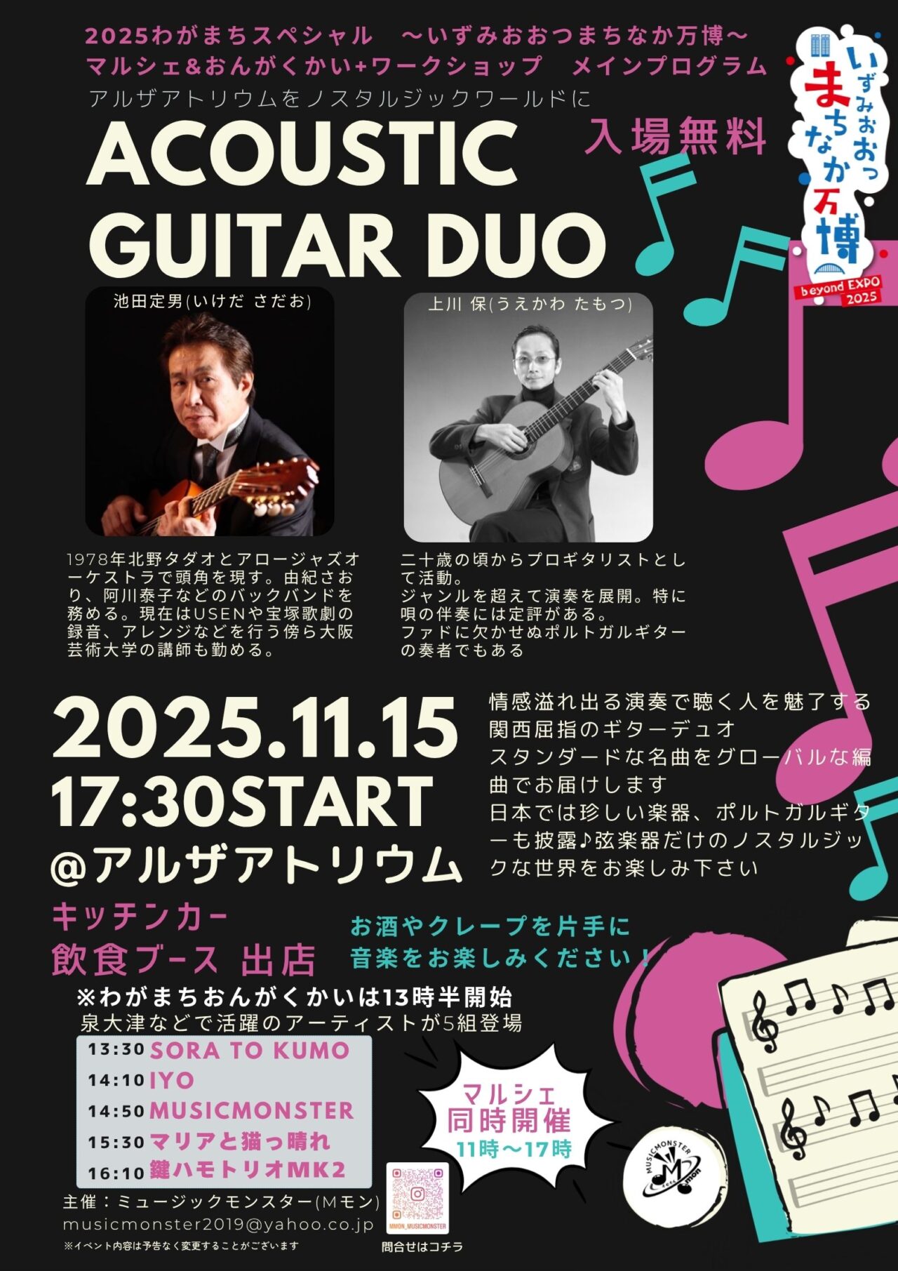 【泉大津市】11/15にアルザアトリウムでジャズギターデュオ演奏があります(入場無料)