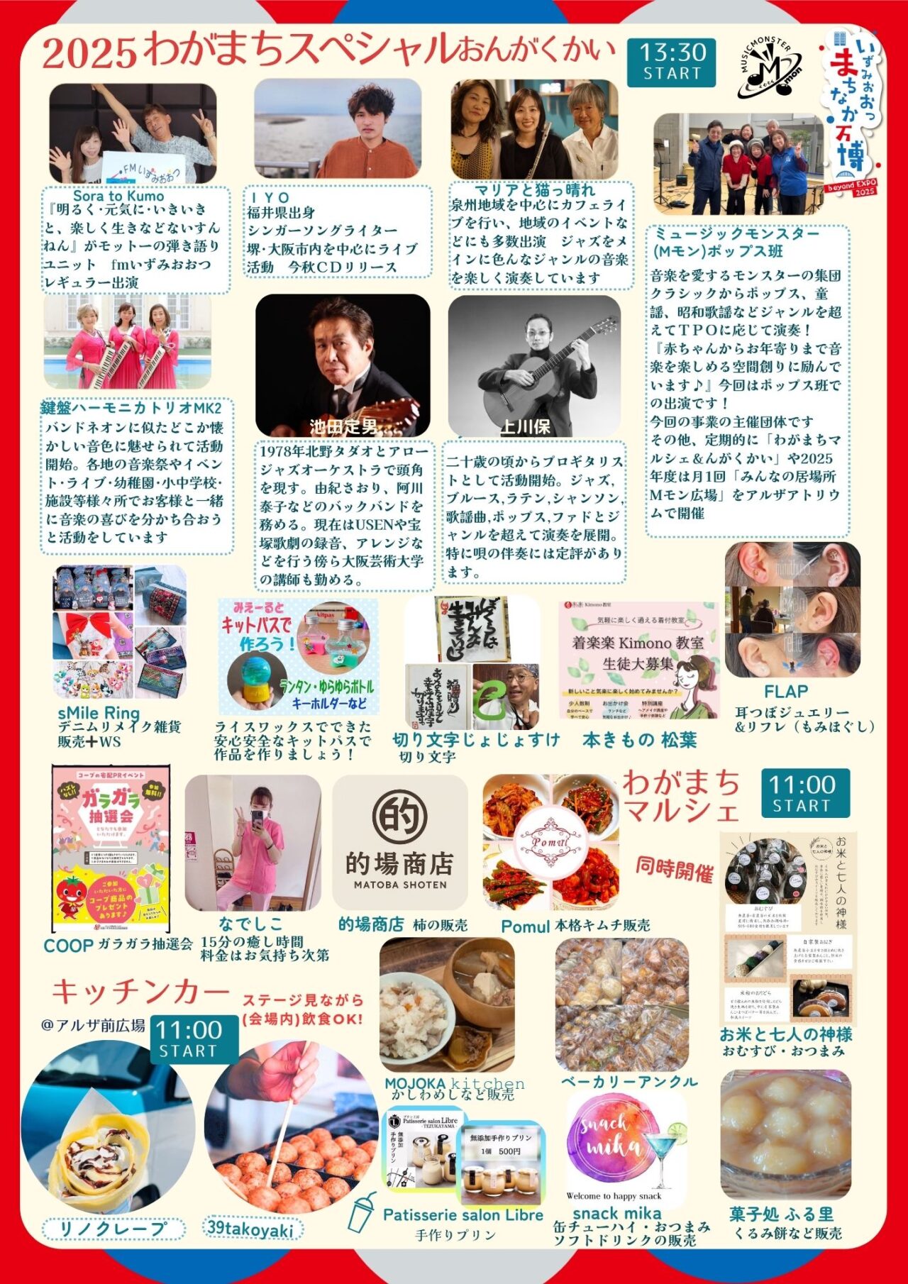 2025年11月15日(土曜日) 11時から19時まで (ステージ13時半~19時・マルシェ11時~17時・キッチンカーと飲食ブース11時~19時)泉大津駅近くアルザアトリウムで