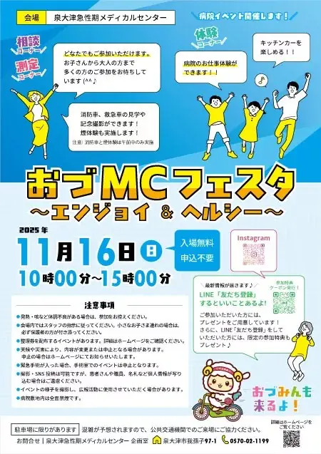 【泉大津市】泉大津急性期メディカルセンターで「おづMCフェスタ~エンジョイ&ヘルシー~」が11/16に開催されます!