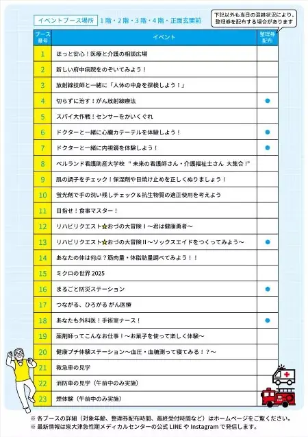 事前申し込みは不要となっておりますが、一部イベントコーナーでは整理券を配布します。
