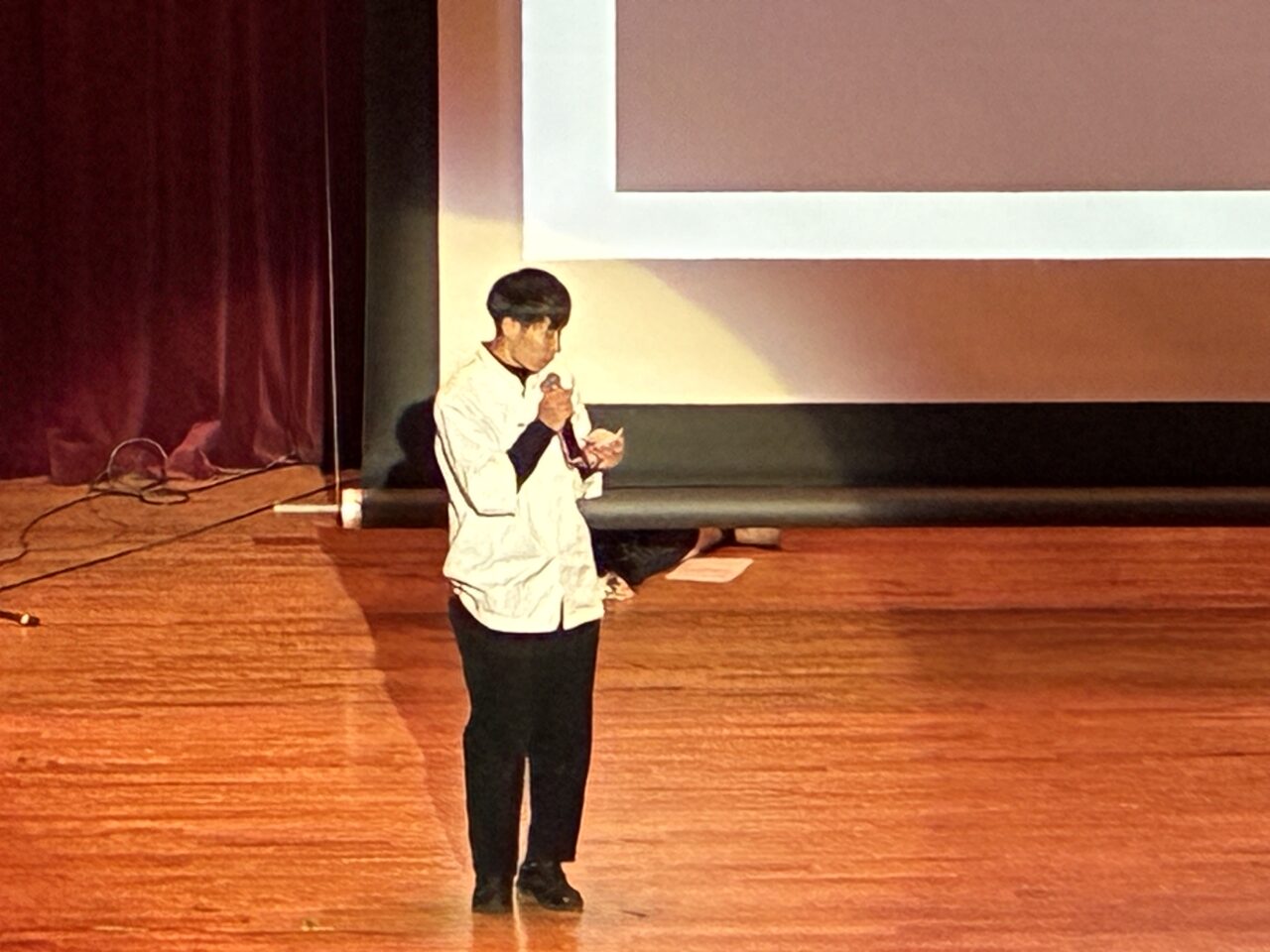 当日は、ステージは生徒たち演出のオープニングアクトから始まり、それぞれの人生の軌跡からきっかけを探そうとのことで、プロゲーマー、書道家、卒業生のダンスクラブ代表、パティシエ、津軽三味線奏者の5名のプレゼンテーション。心が動く、気づきときっかけが見つかるということでグルメインフルエンサー、日本文化を世界へ、イラストレーター、千の公器project、そして同校の教師の5人がプレゼンテーション。