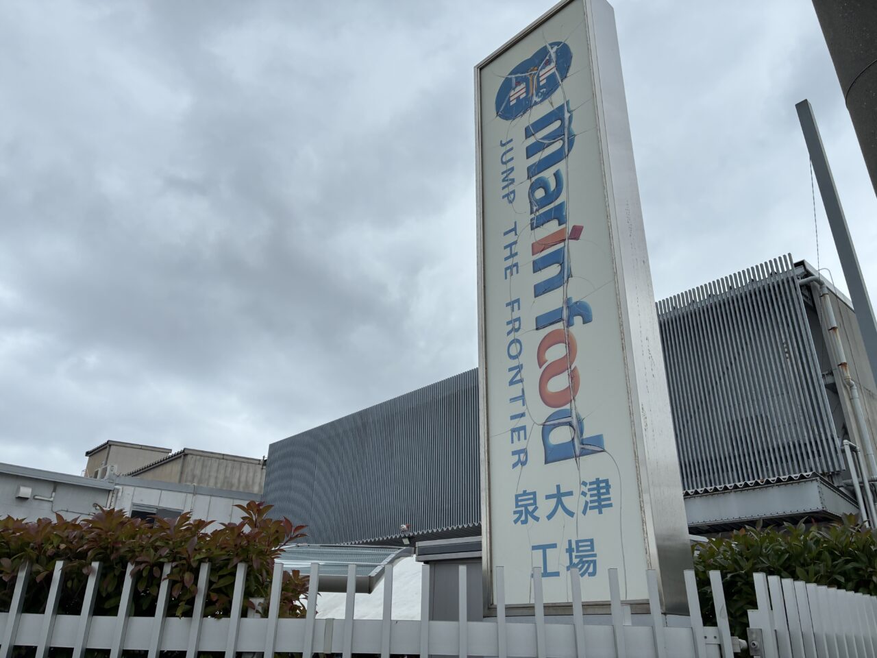 泉大津工場は臨海地区である小津島町で大津大橋を渡って真っ直ぐメイン道路を進んで突き当たり少し手前左側になります。(駐車場は突き当たり)