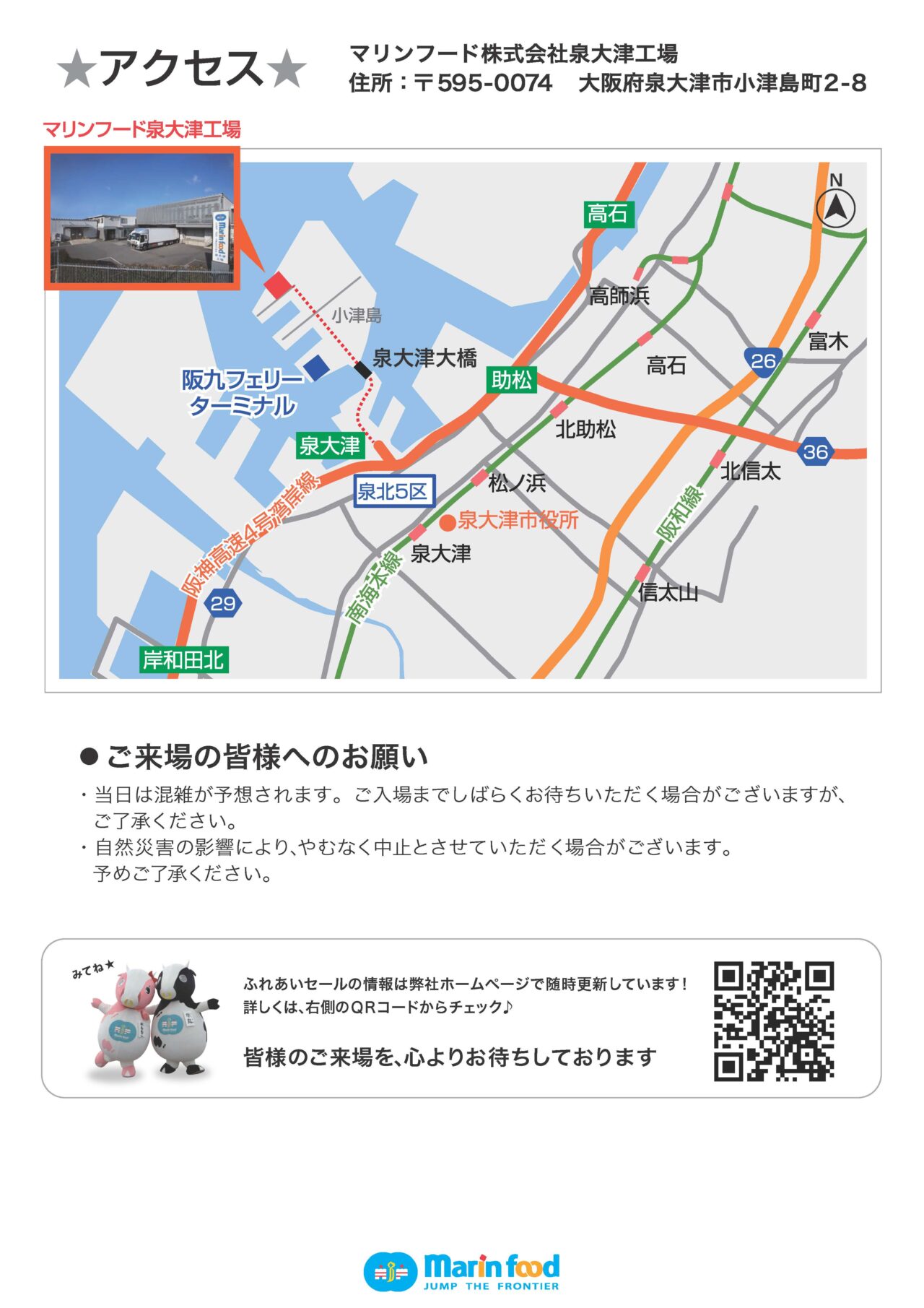 マリンフードのHPによりますと、近隣住民のみなさまに日頃の感謝の気持ちを込めて、工場直売セール(ふれあいセール)を行なっております。11月30日(日)、マリンフード泉大津工場・埼玉工場にて、ふれあいセールを開催いたします。社員一同心よりお待ちしております。
