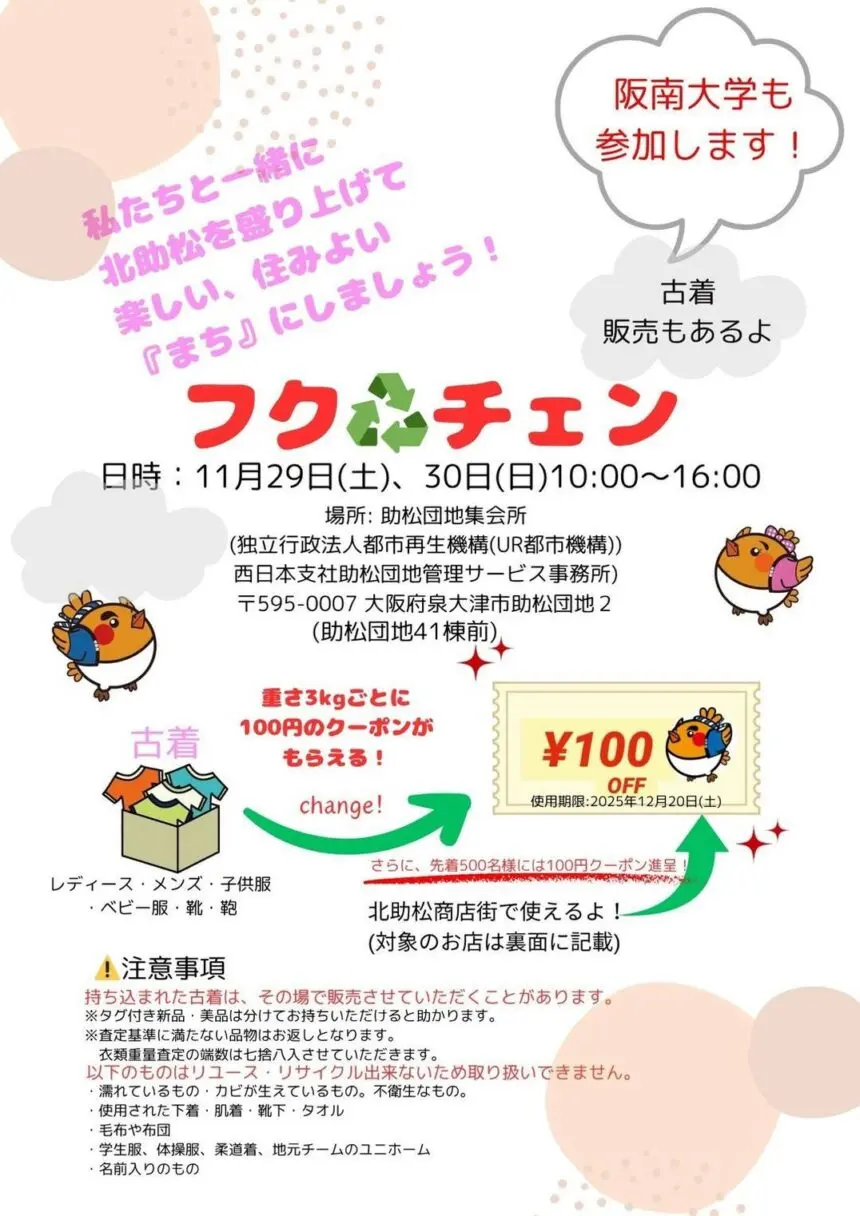 【泉大津市】もう着ない服を北助松商店街クーポン券にチェンジ!11/29(土)30(日)「フクチェン」が開催されます!