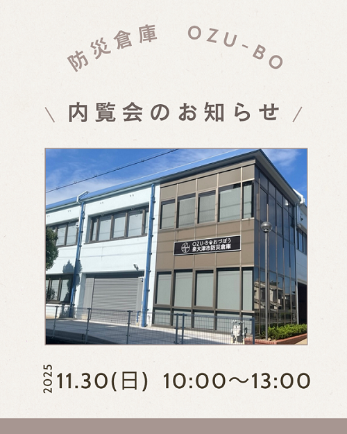 【泉大津市】11/30 新防災倉庫「おづぼう OZU-BO」の内覧会が開催されます!