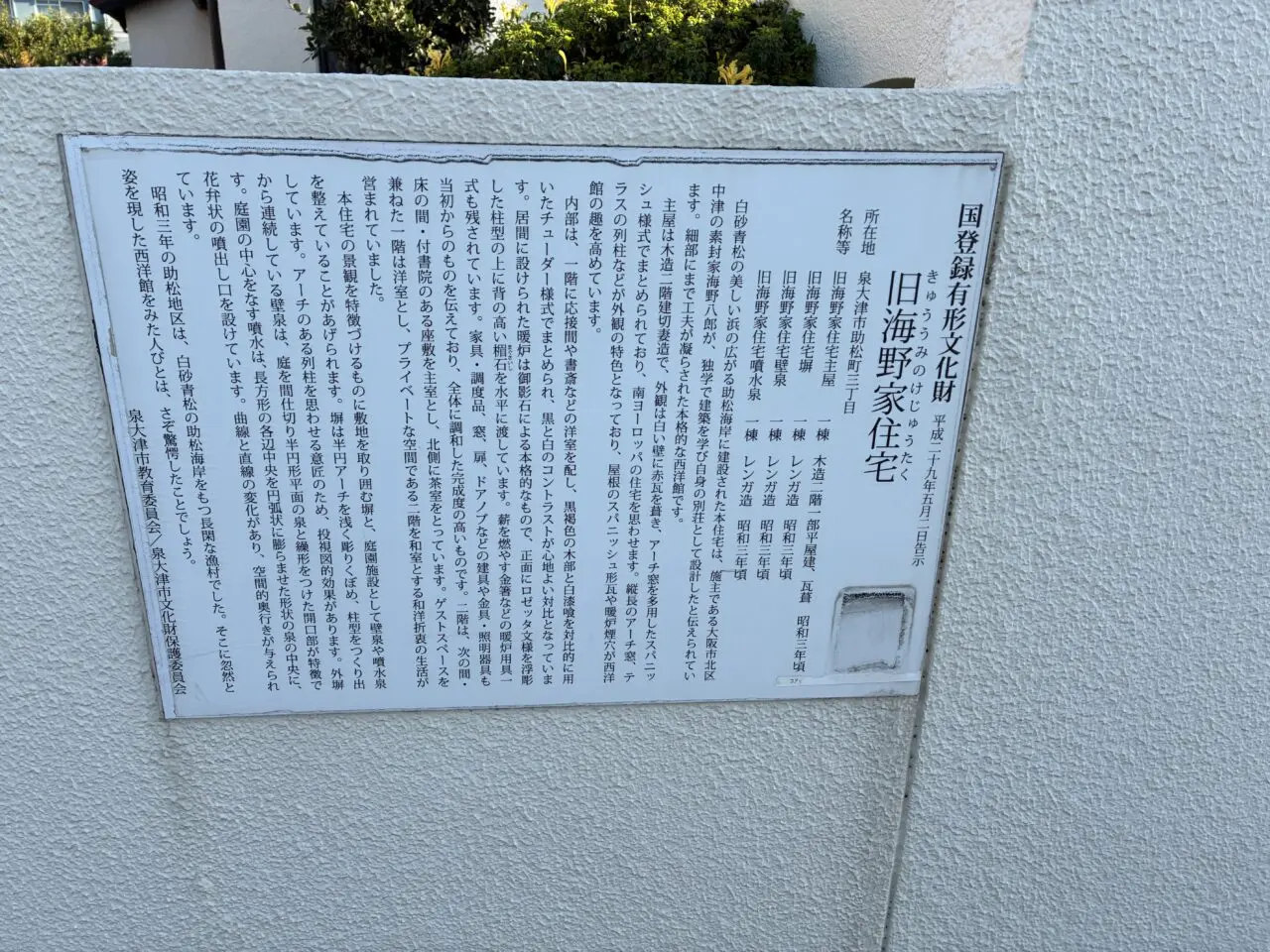 泉大津市のHPによりますと、昭和初期に建てられた本格的な西洋建築を、この機会に是非ご覧ください。(※建物外からの見学となります)そして、本公開展では、周辺の文化財巡りも実施いたします!