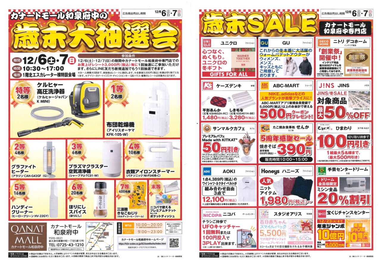 12月6日と7日はカナ-トモール和泉府中、歳末大抽選会が開催されます!