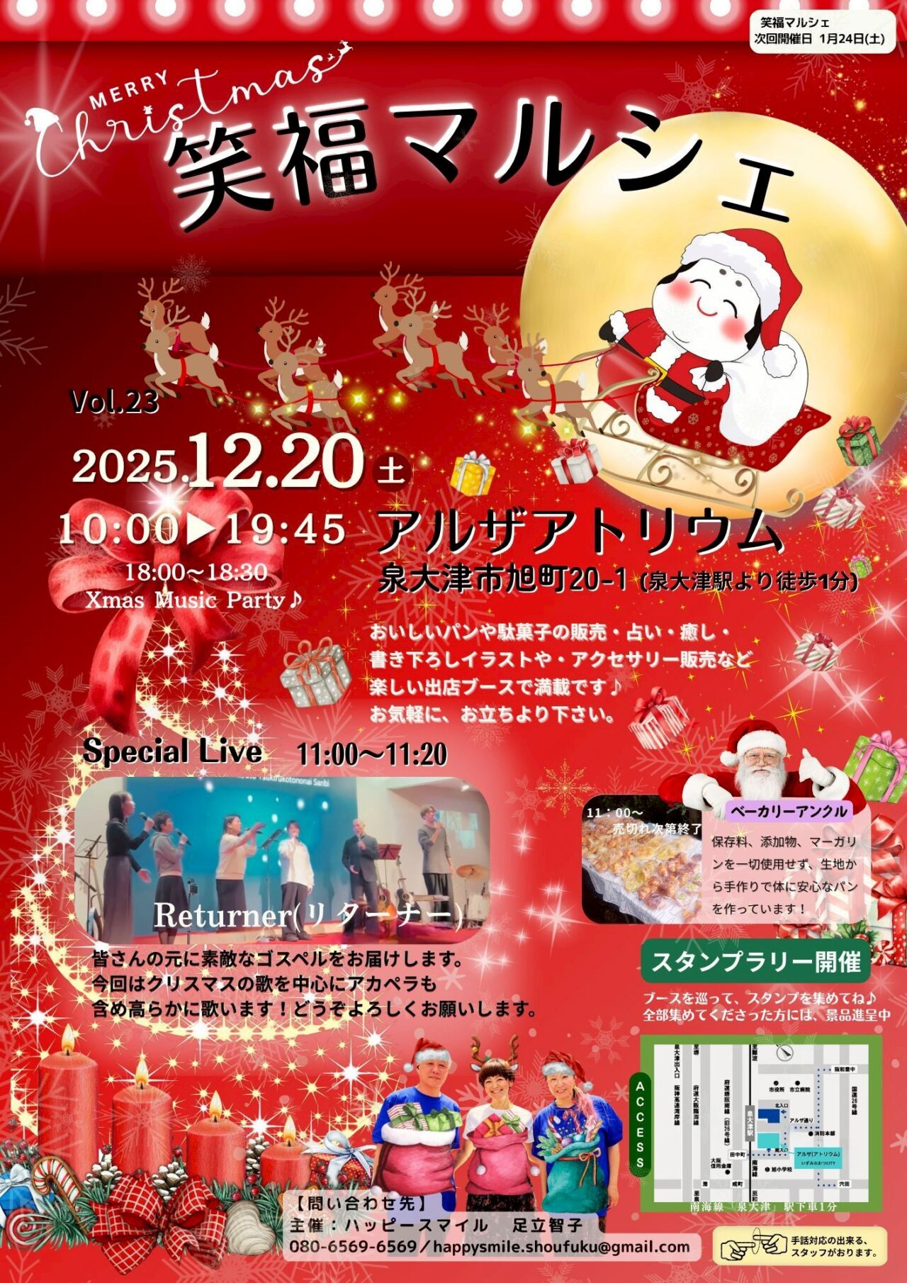 2025年12月20日(土)10時から19時45分まで「第23回笑福マルシェ」が開催されます!
