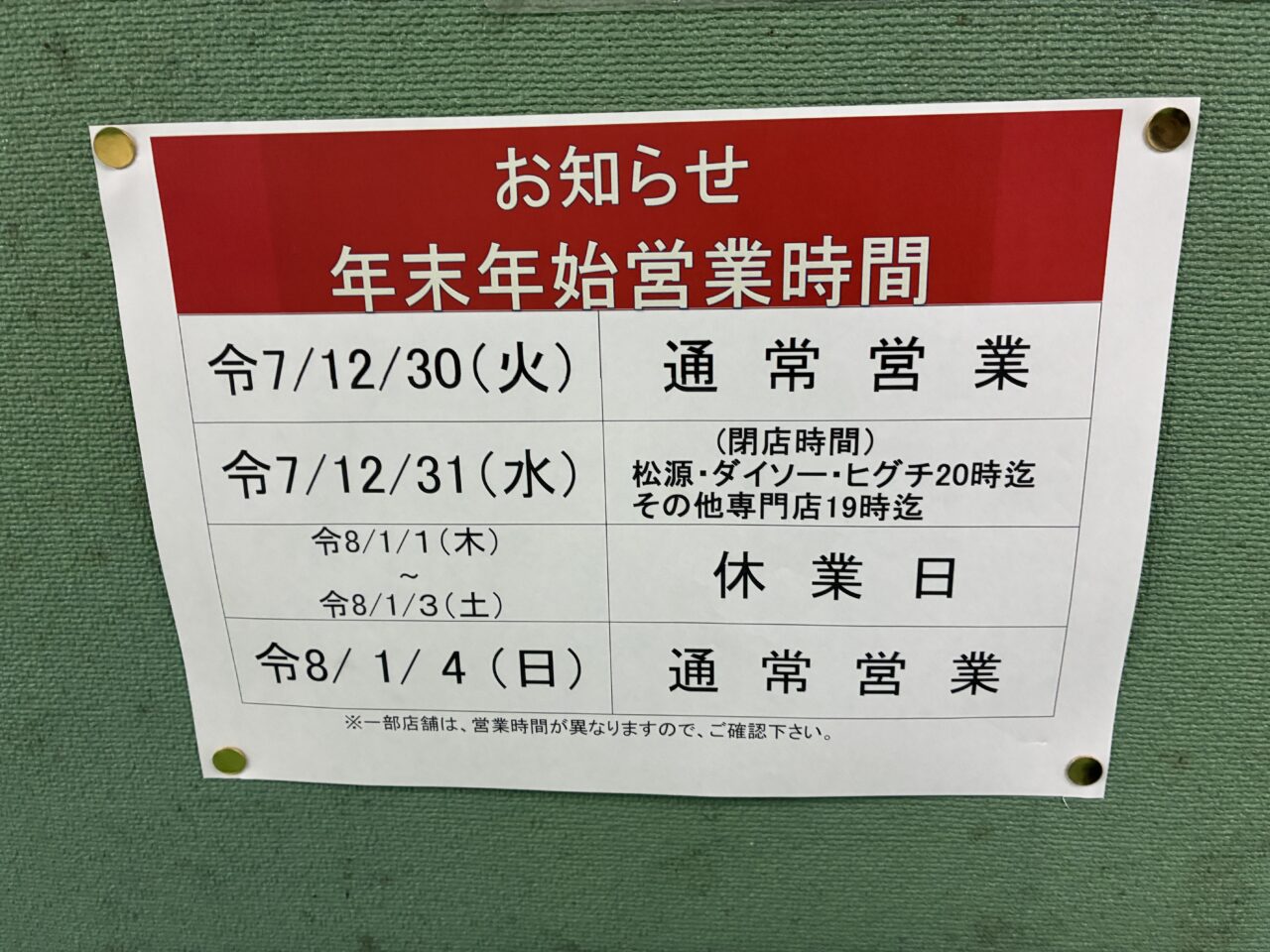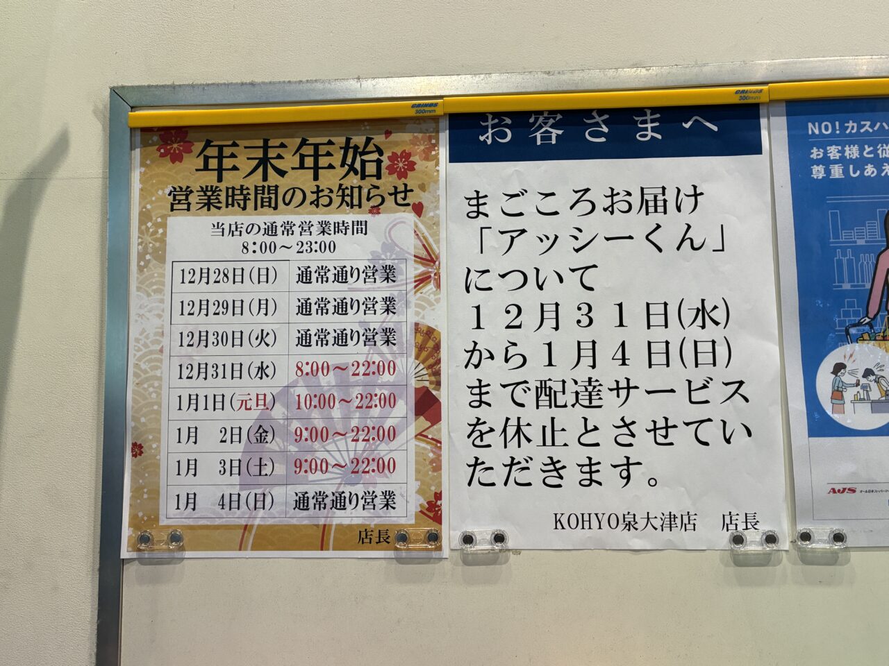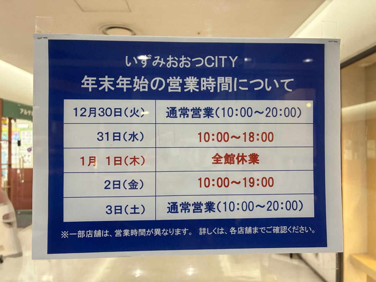2025年もあと約2週間ほどとなりました。年末年始の泉大津駅周辺のテナントビルやスーパーマーケットの年末年始のスケジュールが発表されているので、まとめてみました。