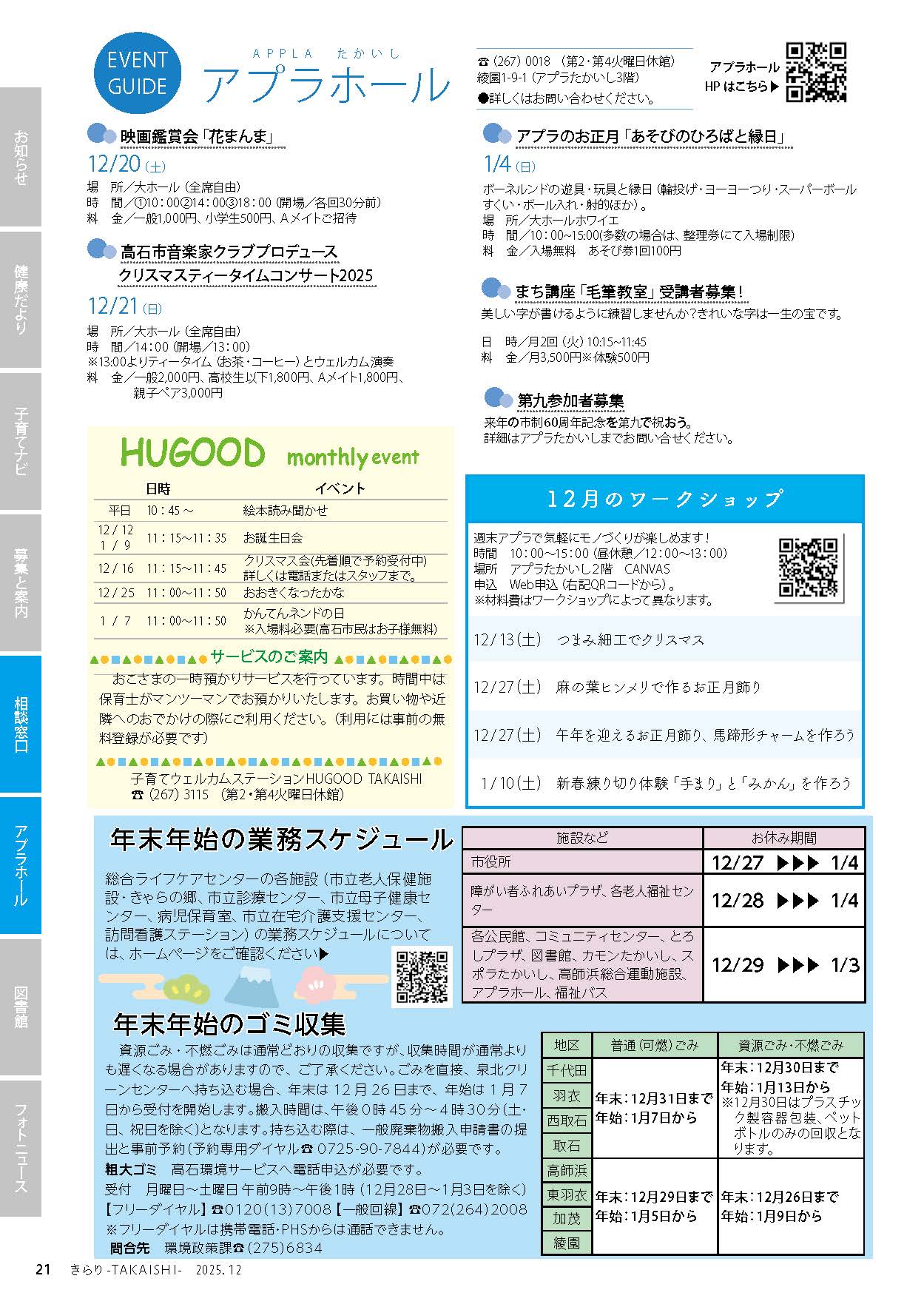 年末年始の家庭ごみの収集日程が高石市広報12月号やHPに掲載されています。