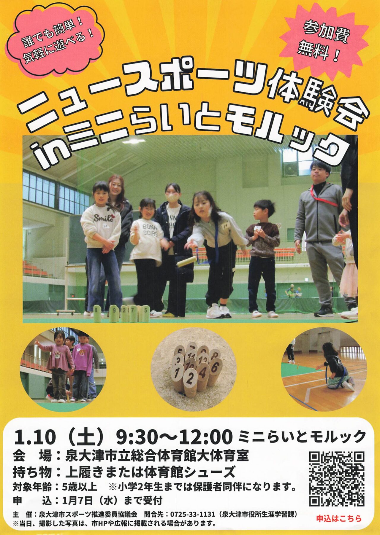 【泉大津市】1/10にミニらいとモルック ニュースポーツ体験会が開催されます!