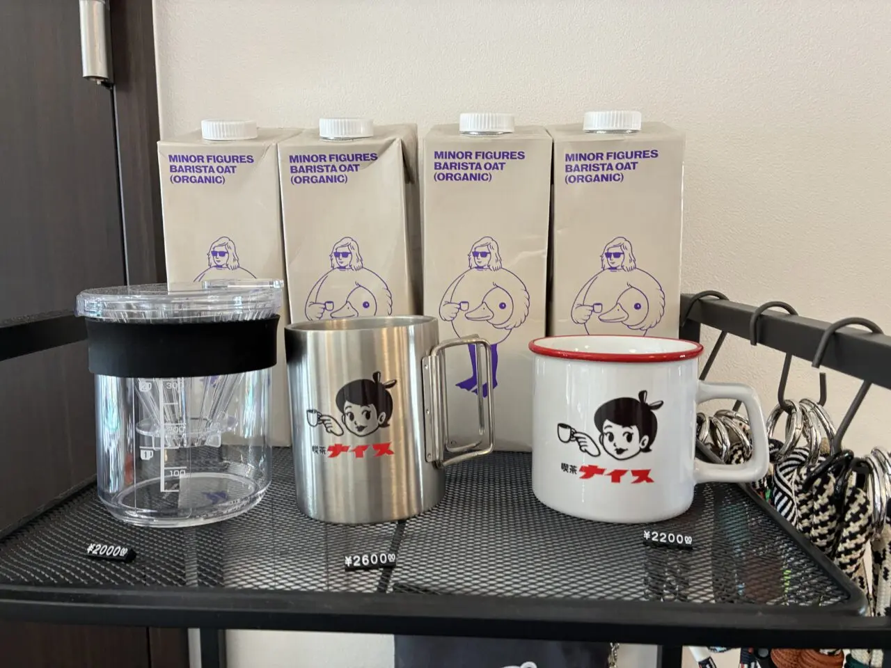 看板やオリジナルグッズでロゴは店内に溢れています。