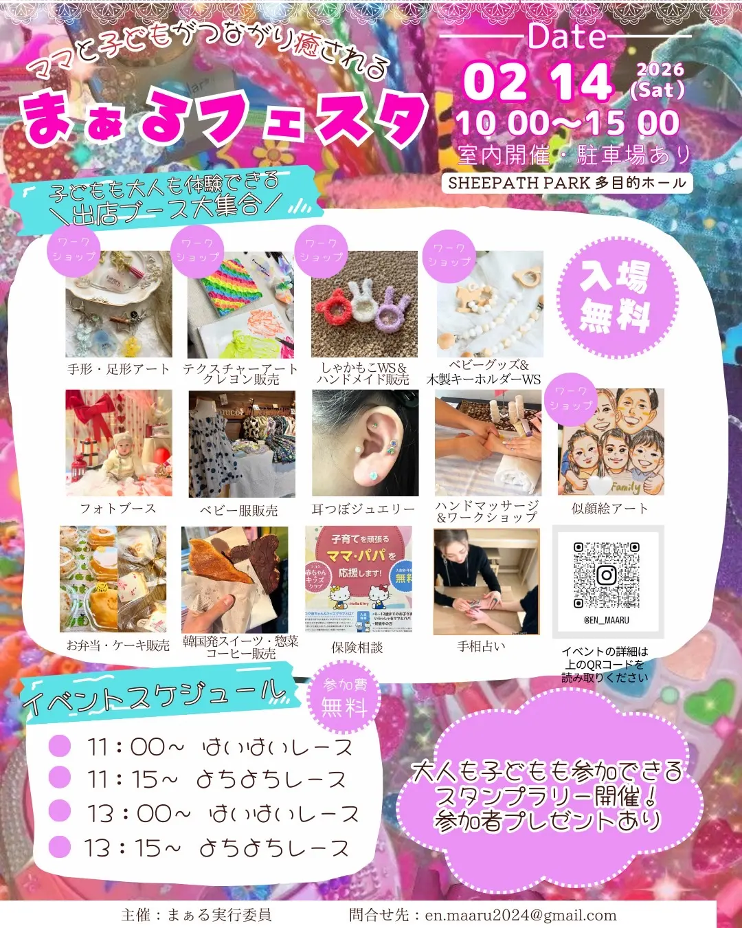 2026年2月14日(土曜日)10時から15時まで泉大津シーパスパーク多目的室(室内)にて親子向けイベントママとこどもがつながり癒される「まぁるフェスタ」が開催されます!
