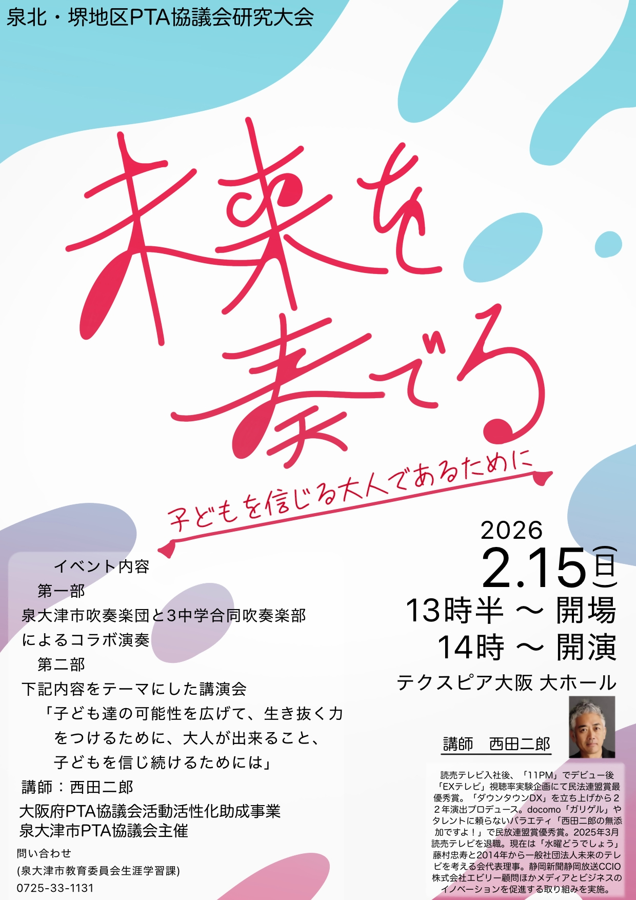 【泉大津市】2/15 テクスピアで開催のPTA協議会研究大会に名プロデューサーが登場!