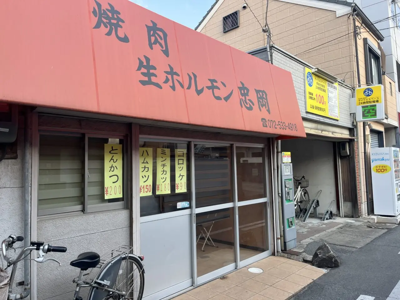 忠岡駅下りホーム(和歌山方面)側から山手に徒歩すぐ!「生ホルモン忠岡」はホルモン専門店ですが、コロッケをはじめとする揚げ物が地元で大人気です!