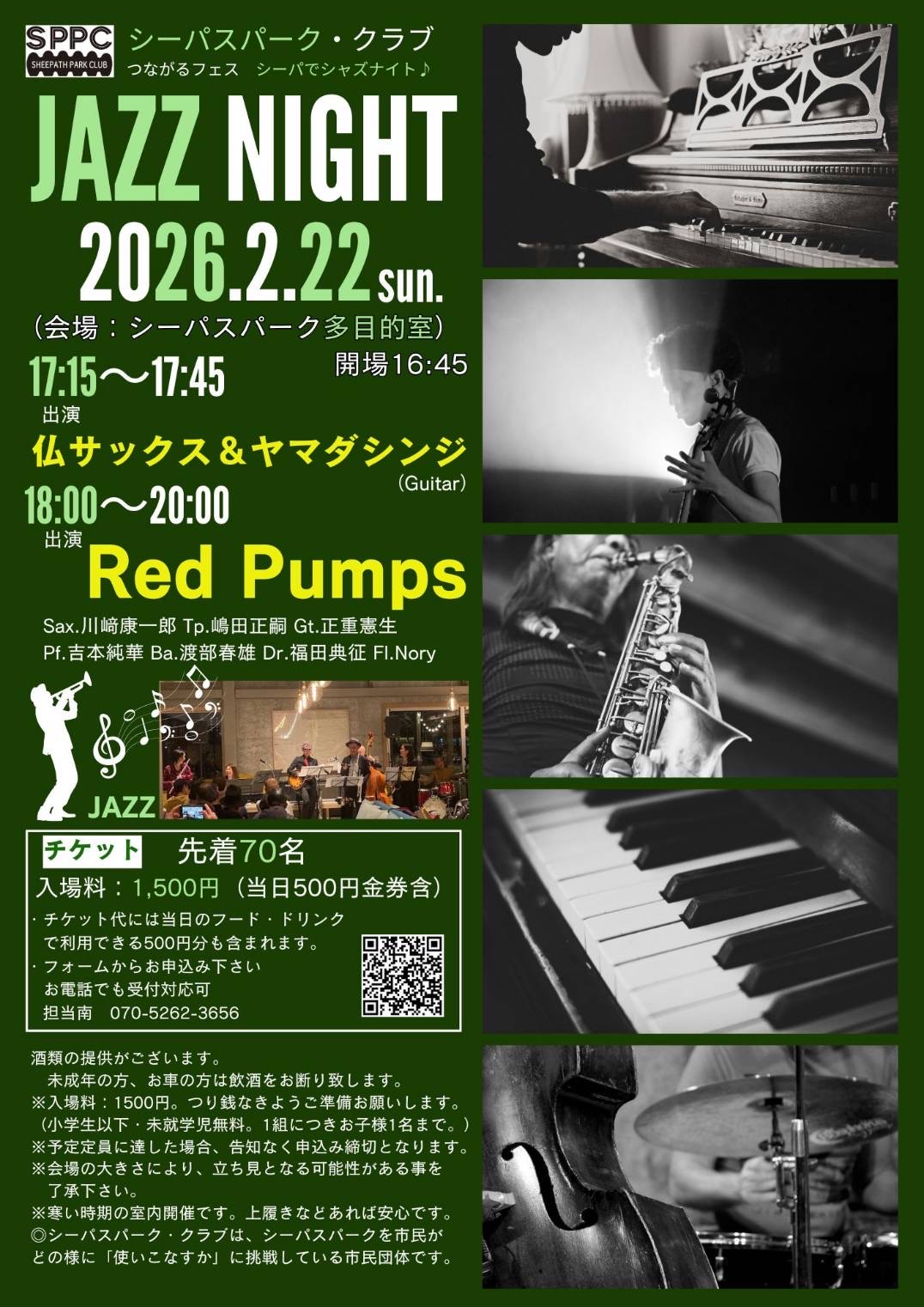 2026年2月22日(日曜日)17時から20時まで、シーパスパーク多目的室 でシーパスパーククラブ主催のつながるフェス 「シーパでジャズナイト♪」が開催されます。