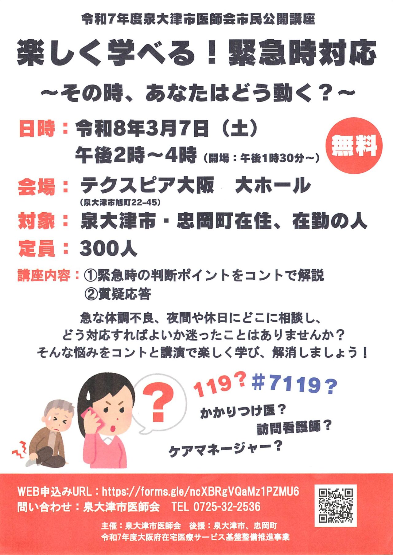 地域の健康を支える「泉大津医師会」の令和7年度市民公開講座です。
