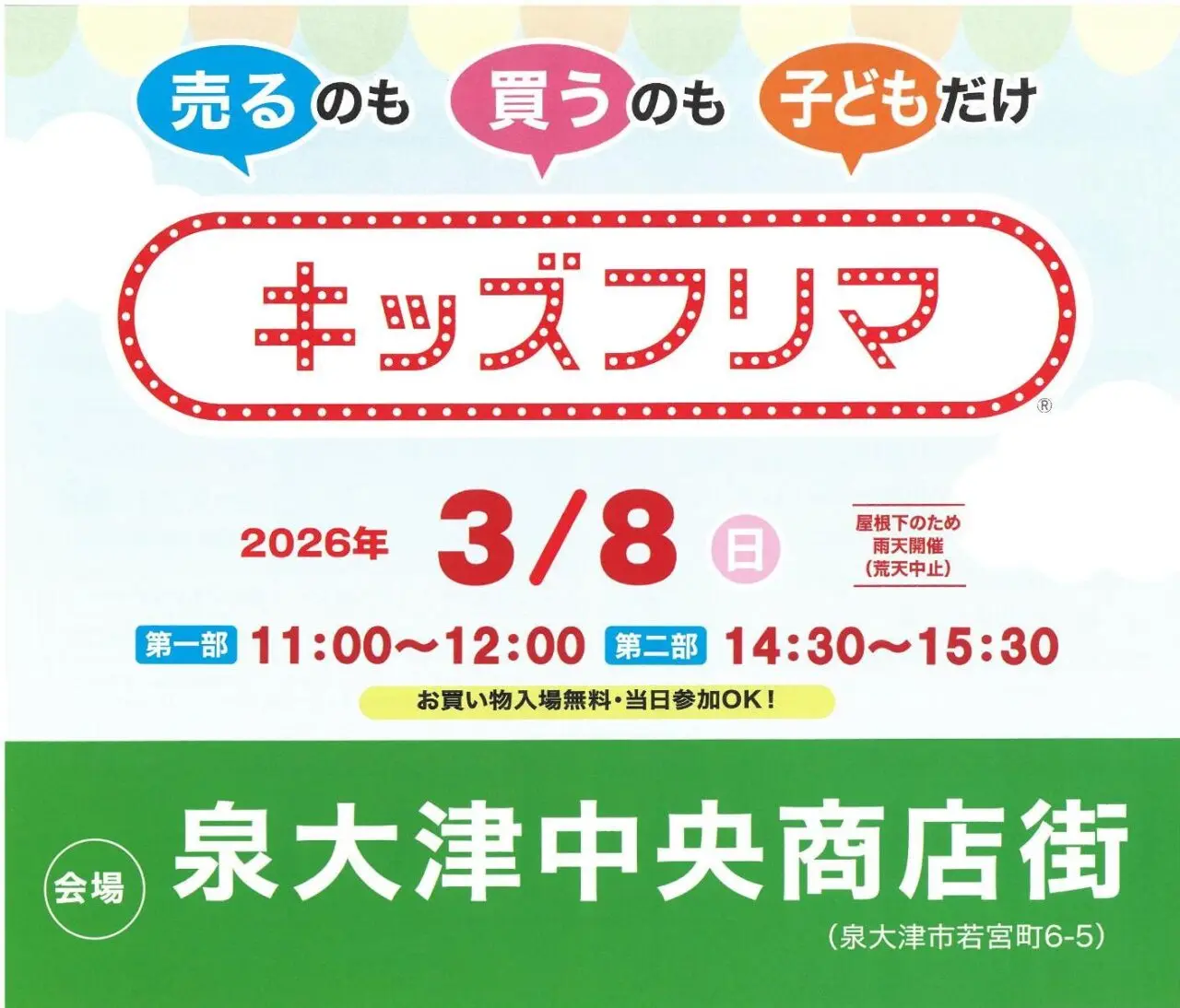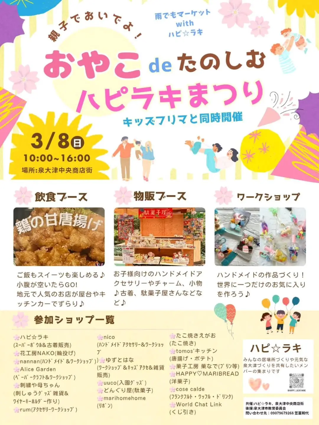 2026年3月8日(日曜日)10時から16時まで泉大津中央商店街でおやこdeたのしむ ハピラキまつりが開催されます!