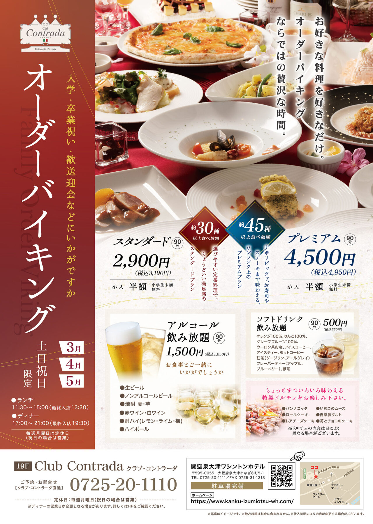 【泉大津市】春が来た!関空泉大津ワシントンホテル「クラブ コントラーダ」は平日がお得です!