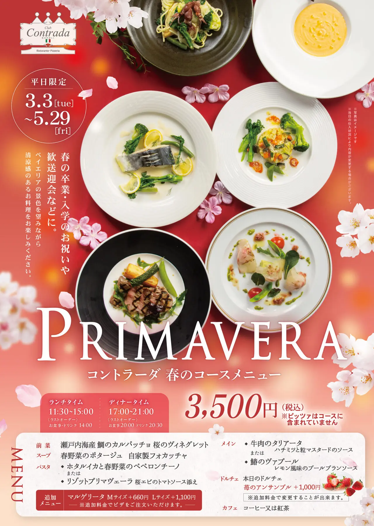 人気のホテルレストラン「クラブ コントラーダ」が、平日限定、春のお得なメニューが登場します。