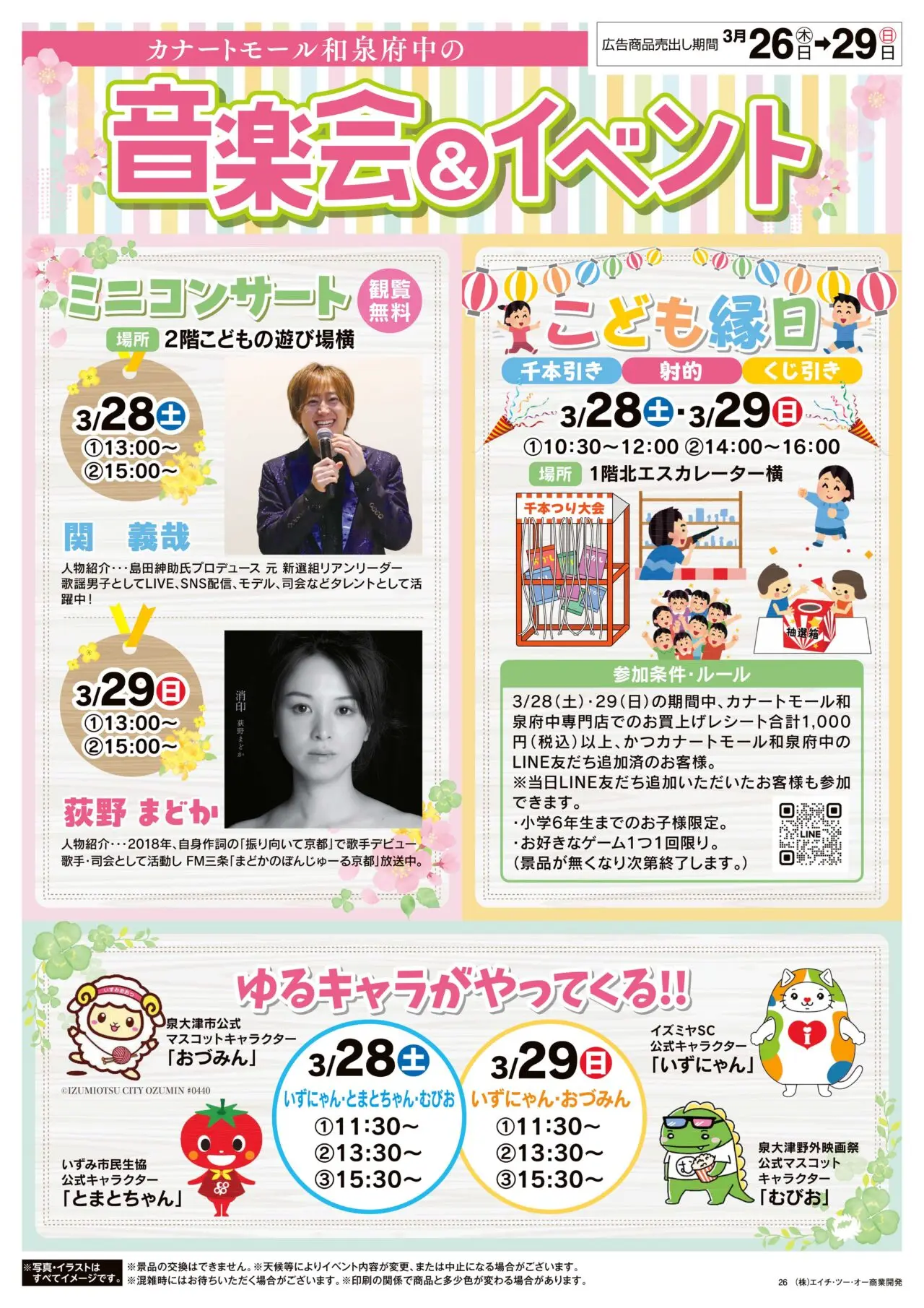 ミニコンサートは28日(土曜日)はタレントの関義哉さん、29日(日曜日)が歌手の荻野まどかさんです。