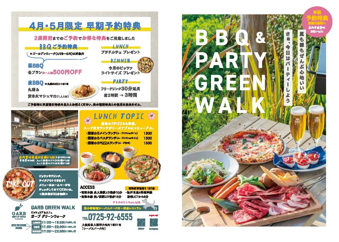 4月・5月限定特典(※GW期間は除く)として2週間前までの予約で、お得がいっぱいです!