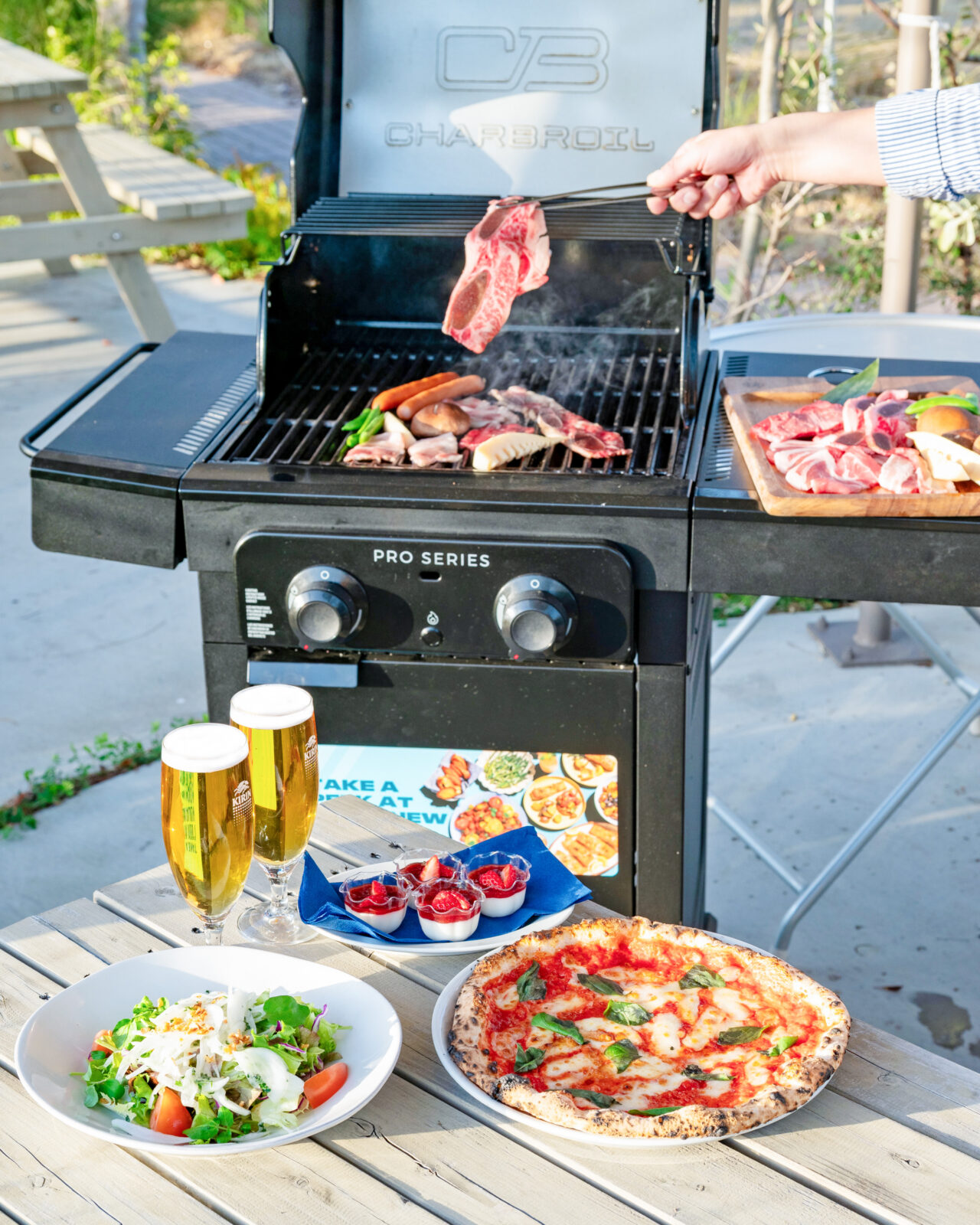 こちらでは、店内でのランチやディナーだけではなく、開放感あふれるテラス席で海外から取り寄せた本格的コンロでBBQを楽しむことができます。