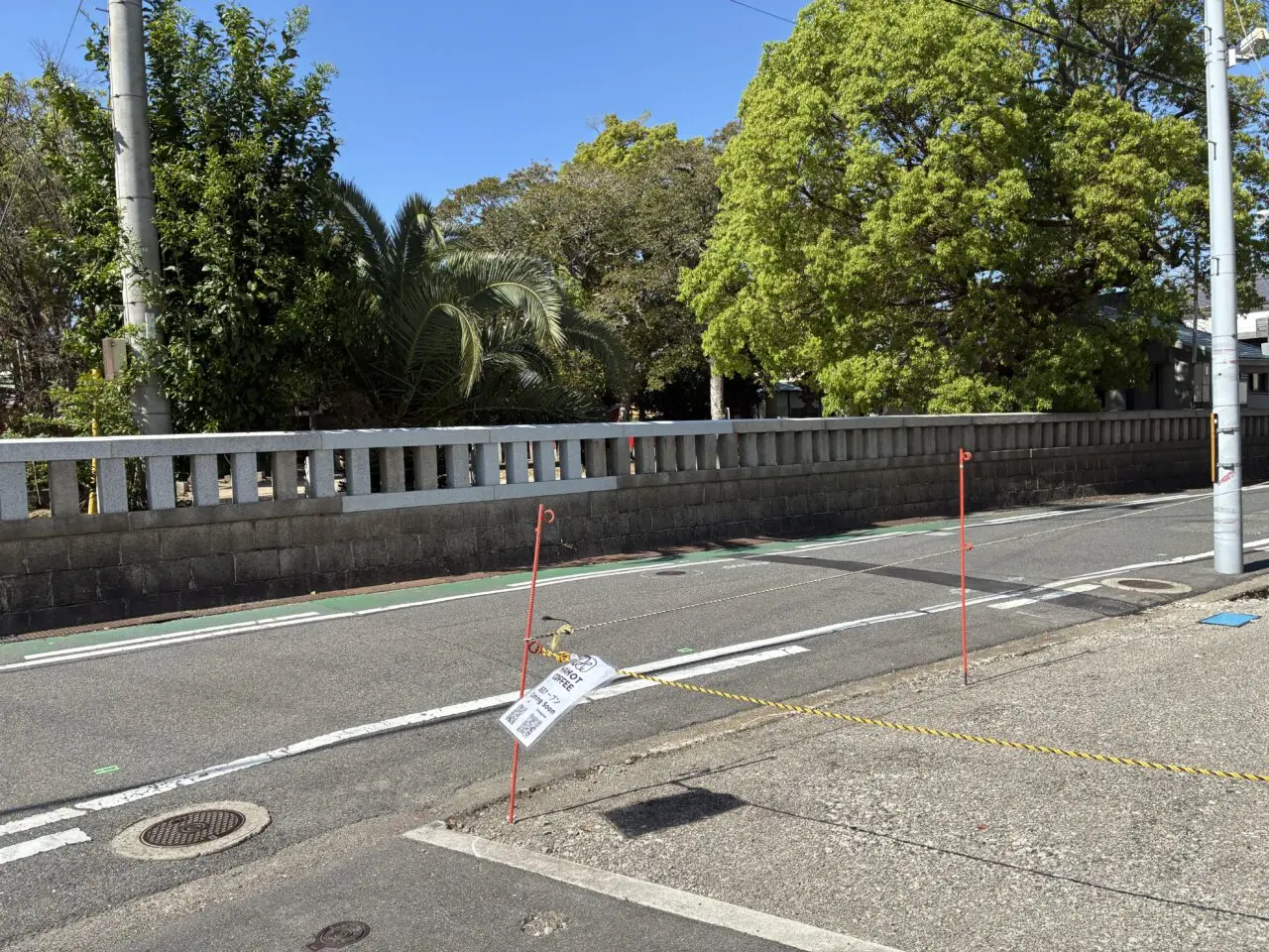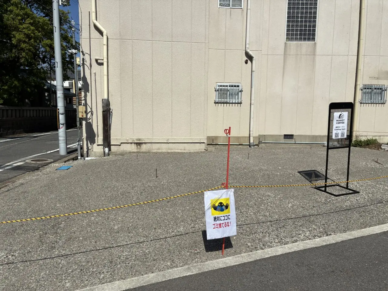 駅から西側に歩いてすぐの大津神社手前の更地に2026年4月現在 「MAHOT COFFEE(マホットコーヒー)」 の案内がされていました