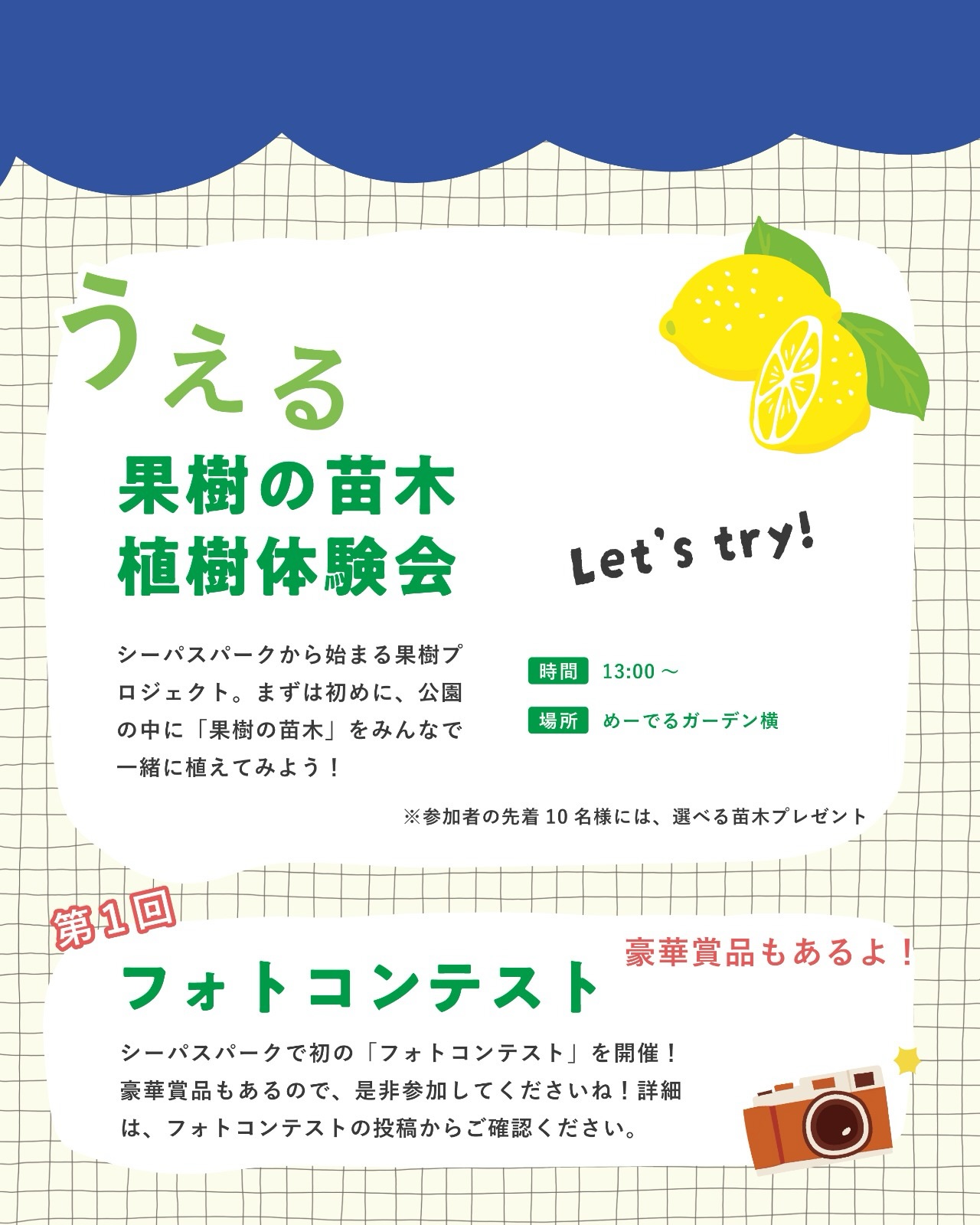 ・詳細やお知らせは公園HP、SNS にて発信しますのでご確認ください。