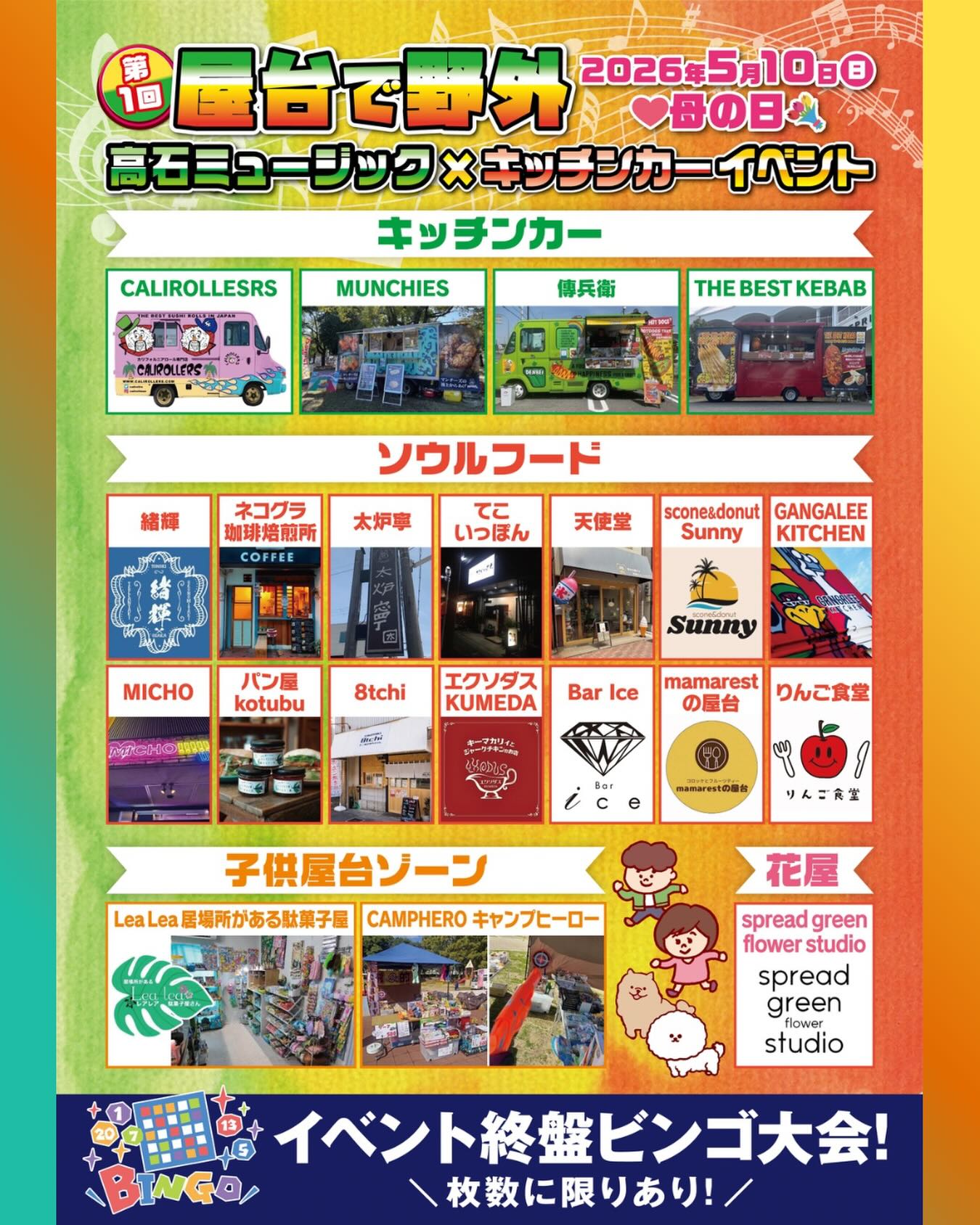 2026年5月10日(日曜日)10時から17時半、母の日の特別な一日に、高石駅前にてエネルギッシュなイベント「屋台で野外 」が開催されます!